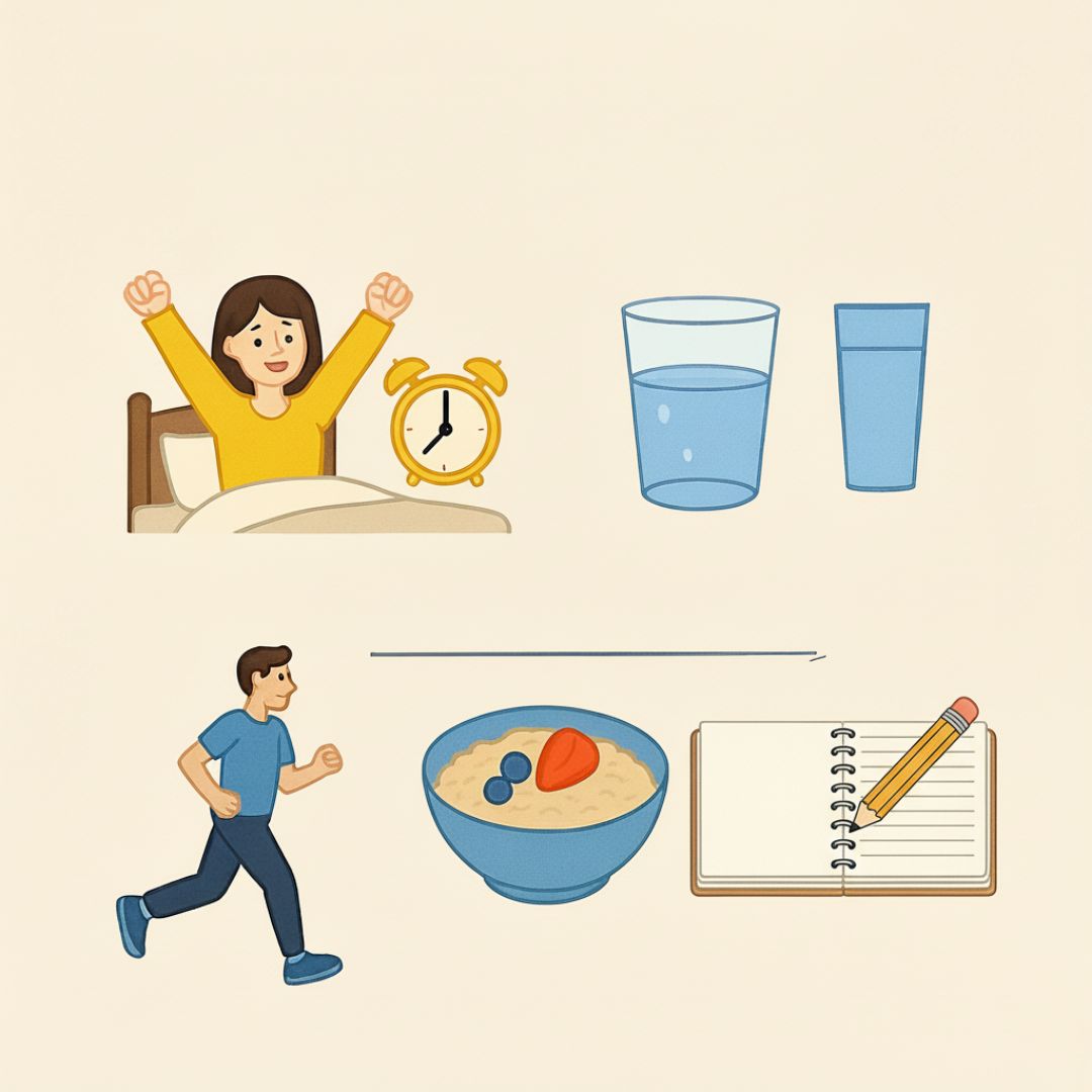 격렬한 운동이 아니어도 괜찮아요. 아침에 10분 정도의 가벼운 스트레칭이나 맨몸 운동은 몸의 긴장을 풀어주고 혈액순환을 도와 하루를 활기차게 시작할 수 있도록 돕습니다.